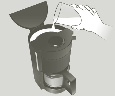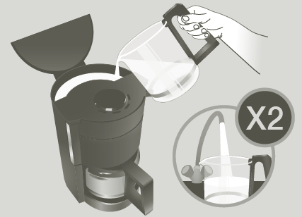 • Pour the solution into the water tank (without coffee),