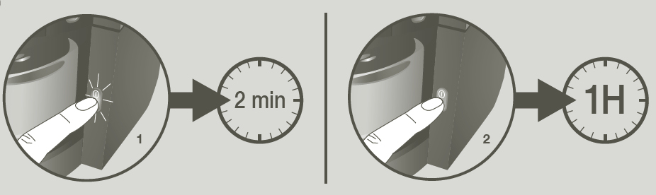 Possible to reprogram for 3 min, 9 min (factory setting) and 3 hours.